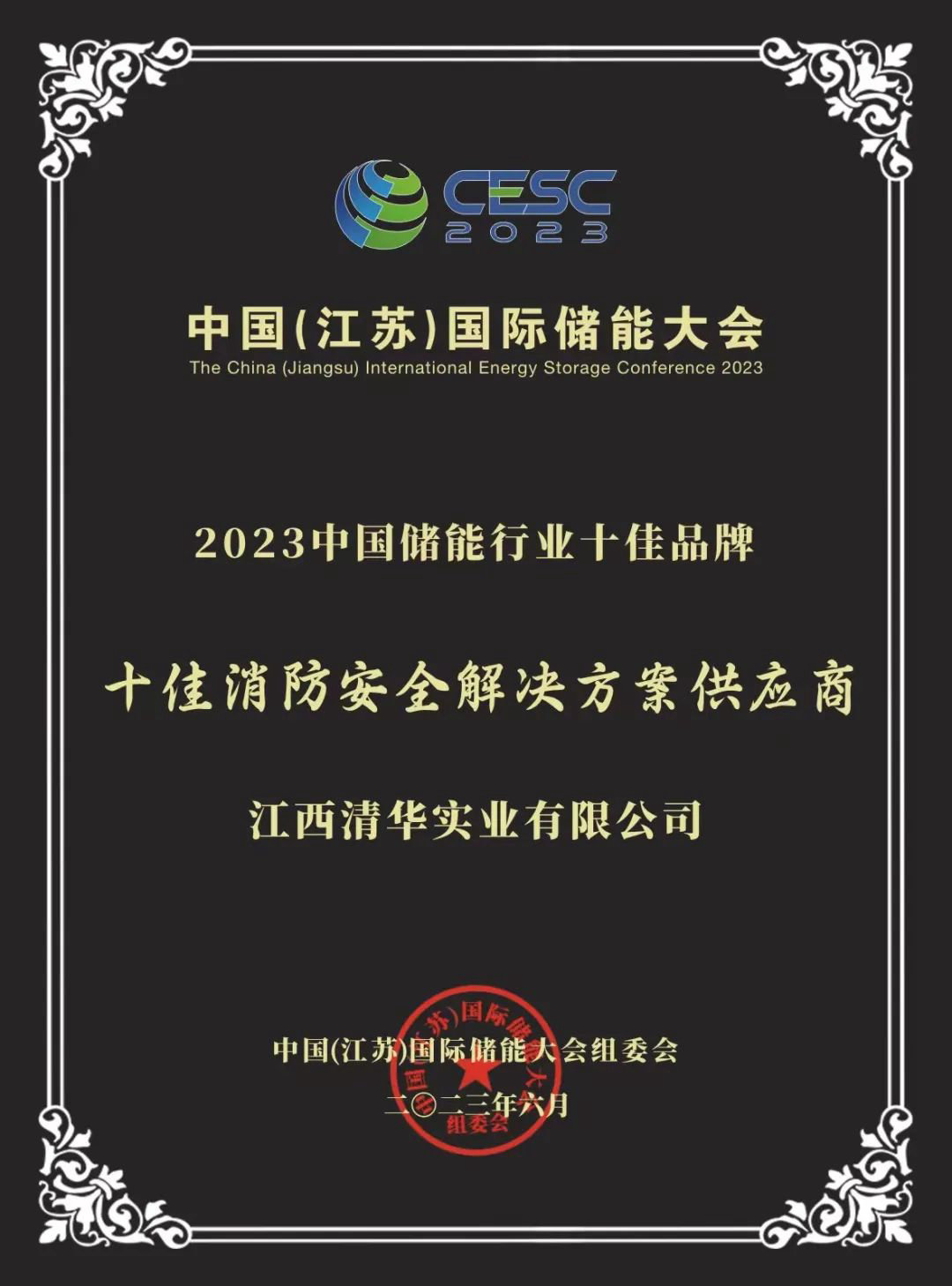 江西清华实业有限公司很荣幸受邀参与其中,和业界同仁们与会交流、融合促进,并再度获评为“中国储能行业十佳消防安全解决方案供应商”。