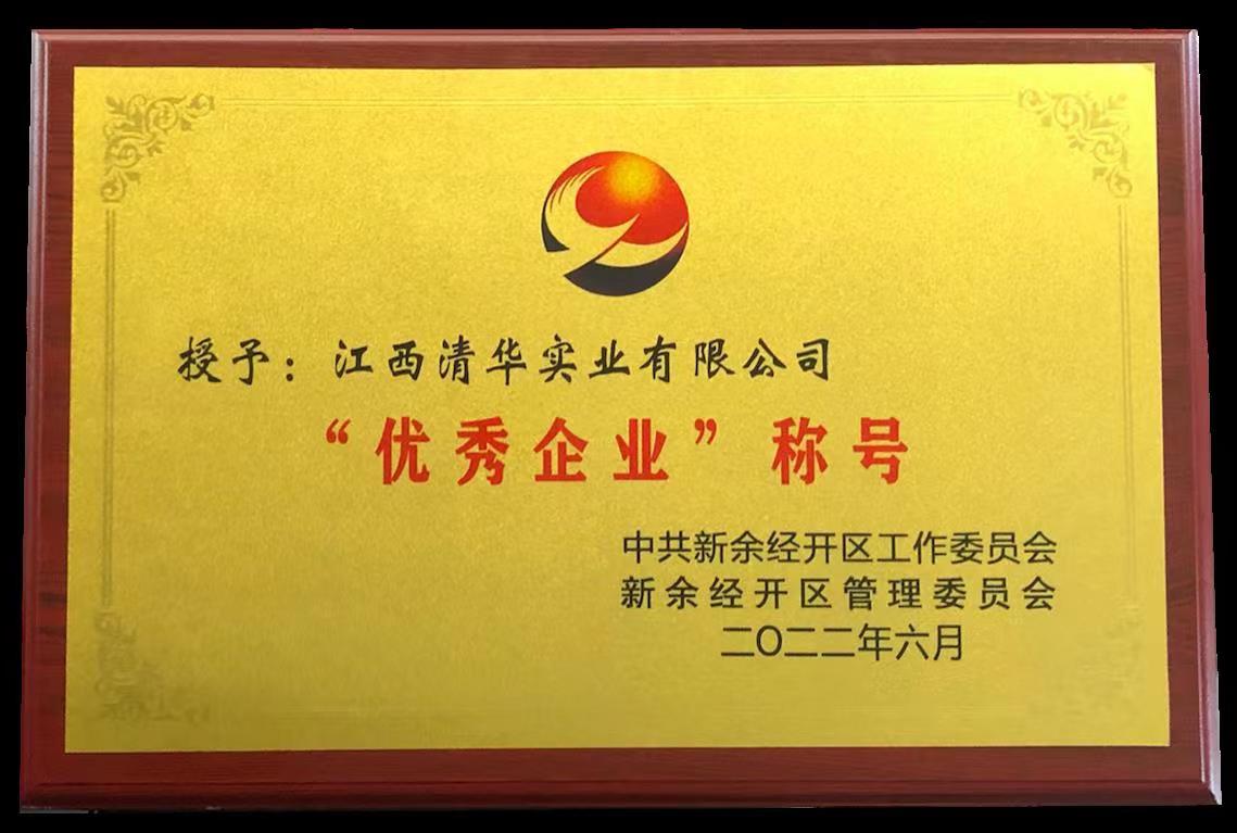 2022年6月25日,在新余市经济开发区“进位赶超”推进大会上,新余市经济开发区管委会为江西清华实业有限公司颁发了2021年度新余市经济开发区“优秀企业”荣誉奖牌。