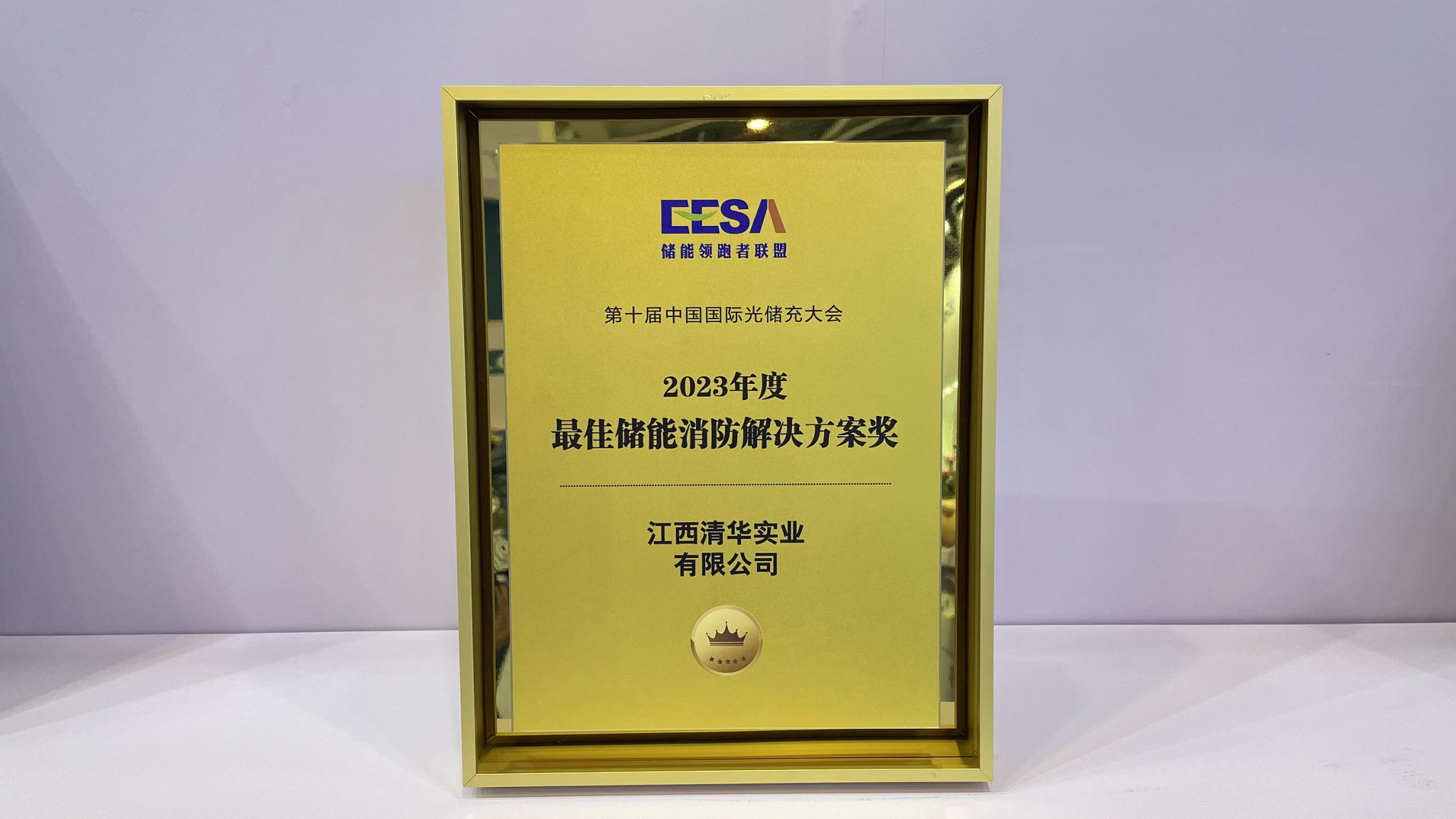 历时两月激烈角逐,结合线上投票及专家评审团两轮评分,江西清华实业有限公司凭借创新先进的技术能力、优异的市场表现和卓越的客户评价,在本次专业评选中一举斩获“2023年度最佳储能消防解决方案奖”。