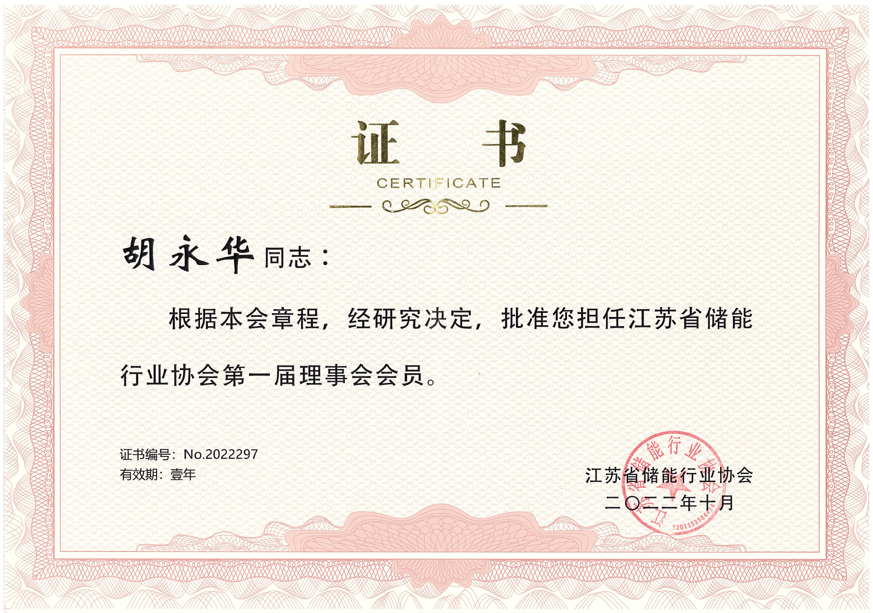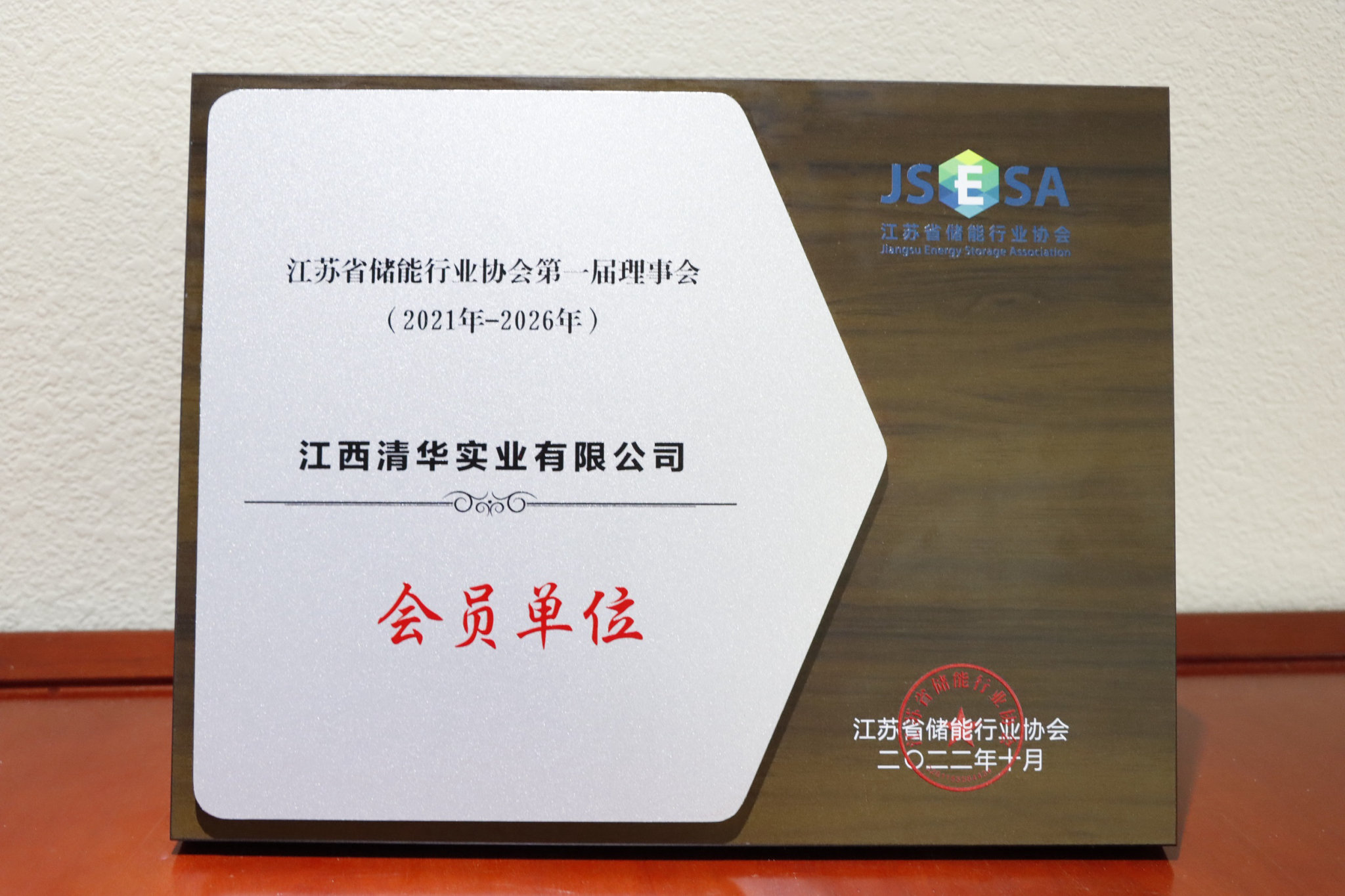 近日,经江苏省储能行业协会审议通过,江西清华实业有限公司正式成为江苏省储能行业协会会员单位,公司总经理胡永华先生成为协会第一届理事会会员。