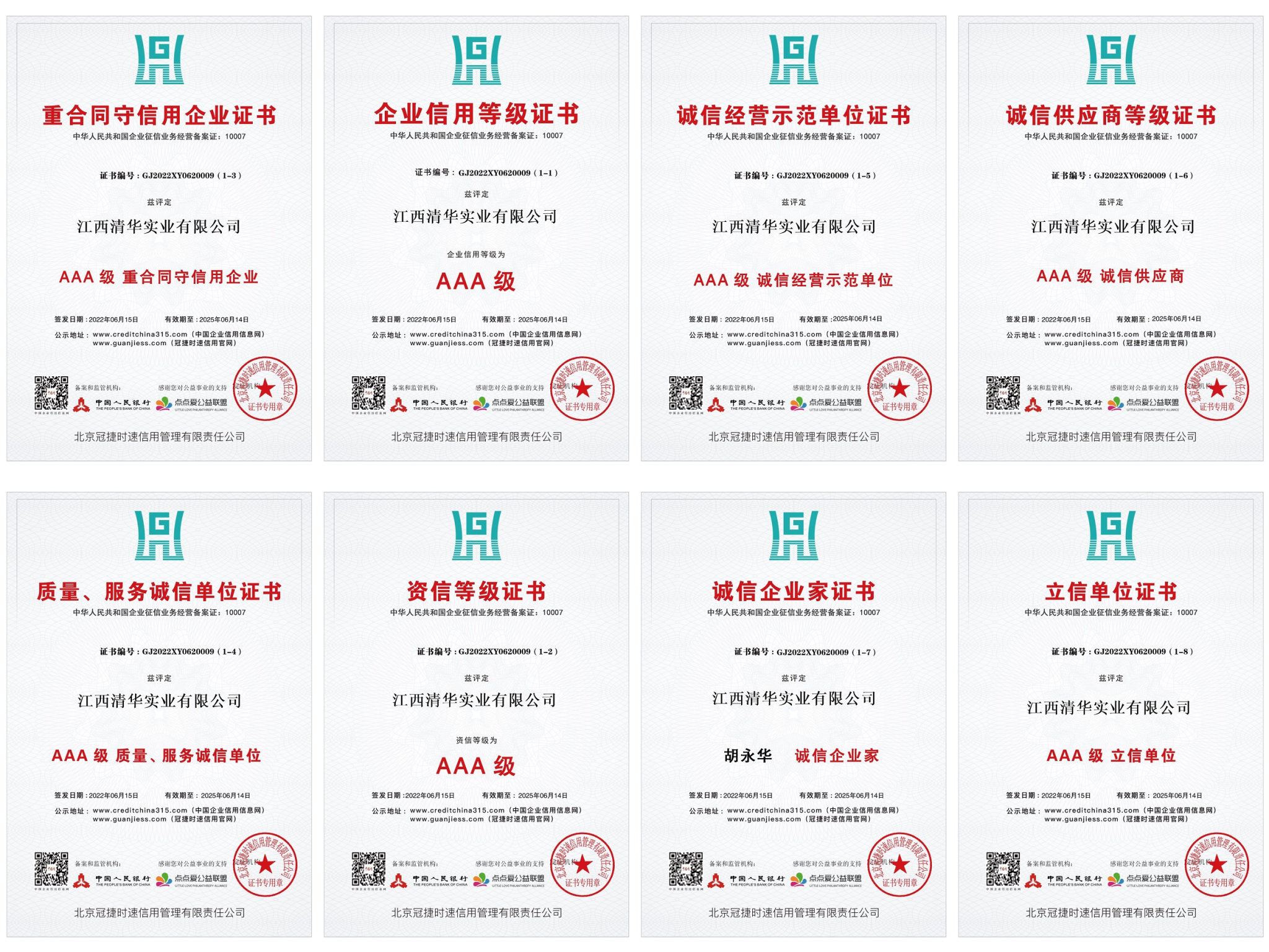 江西清华实业有限公司成立之初就制定了“专注成就品质、诚信铸就品牌、合作谋求共赢、创新引领发展”的永做精华的经营战略,始终坚持诚信经营,不断用专业、优质的服务回馈着支持、信任公司建设发展的客户朋友们,获得了诸多荣誉。