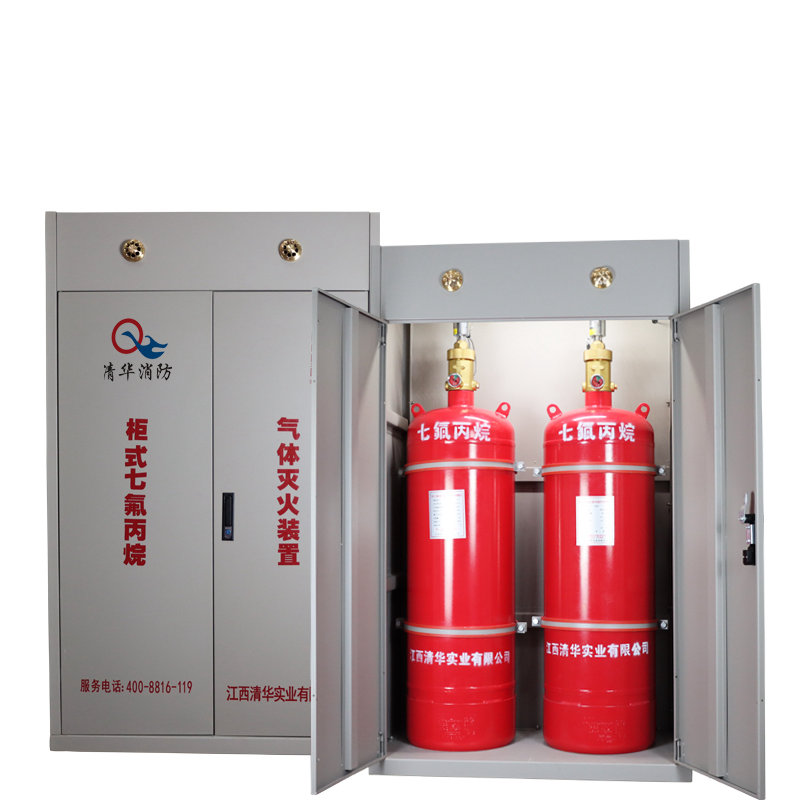 双柜七氟丙烷灭火装置是一种预制系统,成系列生产。它是一种无管网、轻便、可移动、自动灭火的消防设备,具有安装灵活方便、外形美观。灭火剂无管网损失,灭火效率高、速度快、无污染等特点。火灾发生时,可直接向保护区内自动喷洒灭火剂,方便快捷。